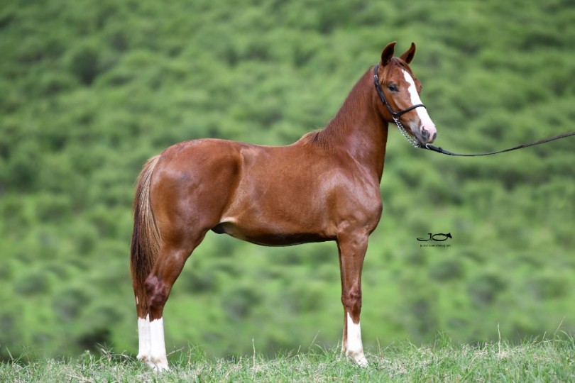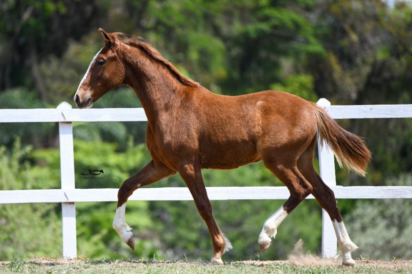 NEPAL JJL DAS ORQUÍDEAS : Nepal tem tudo que um criador experiente procura. Mega Potraço em todos os sentidos, pelagem alazã linda, excepcional de morfologia, dentro do melhor padrão da raça, aprumos perfeitos, espádua inclinada, frente alta, ótimo arqueamento de costelas, boa ligação de dorso lombo e uma lindíssima expressão racial. Apresenta um andamento dissociado, com anteriores rolados, posteriores fortes e dentro da massa, diagrama de marcha espetacular e muita energia de movimentação, vai com certeza ser um sucesso na reprodução. Na genética ele também agrada criadores mais exigentes. Seu pai, Noturno da Diesel é neto do Favacho Único e do Abrigo D2. A mãe de Nepal, Manchete do Aeroporto é uma doadora TOP neta da grande Sapoti do Aeroporto. Portanto, este potro é para abrilhantar o plantel do comprador !!! |